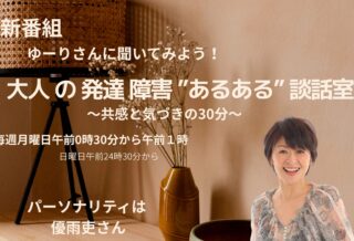 ゆーりさんに聞いてみよう! 「大人の発達障害 “あるある”談話室」〜共感と気づきの30分〜 パーソナリティは優雨吏さんです。 番組では、番組は、発達障害を軸としつつも堅苦しくなく、共 […]