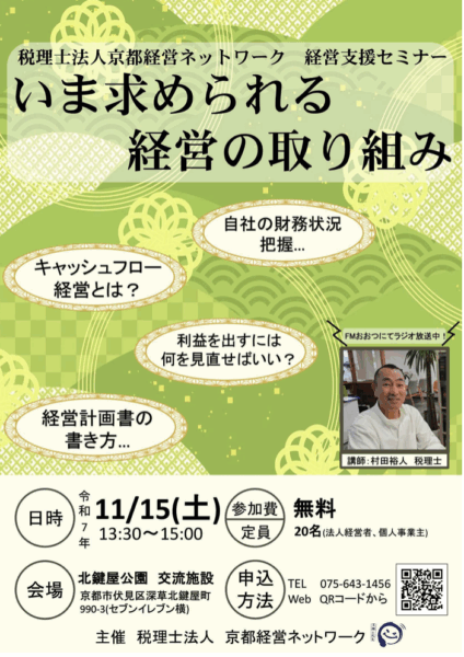 ご参加希望の方は、京都経営ネットワークのホームページからお申し込みください。