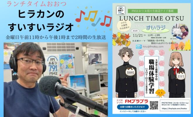 11月21日(金) #FMおおつ 79.1MHz 11時〜13時は「ランチタイムおおつ」“ヒラカンのすいラジお昼の臨時号”でお楽しみください。