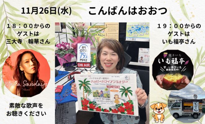 水曜日(11月26日)の夜は『こんばんはおおつ ハッピーハワイアンエナジー WEDNESDAY』バークホルダー桂光が担当