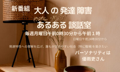 新番組 優雨吏さんの「大人の発達障害 あるある談話室」10月5日(日曜日)午前24時30分からの30分間