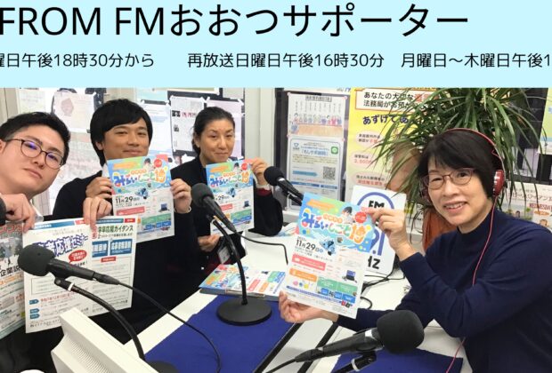 FROM FMおおつサポーター」ゲストは「ハローワーク大津の田中さん 阿部さん 伏木さん」です。土曜日午後18時30分 再放送日曜日午後16時30分から 月曜日〜木曜日午後13時から