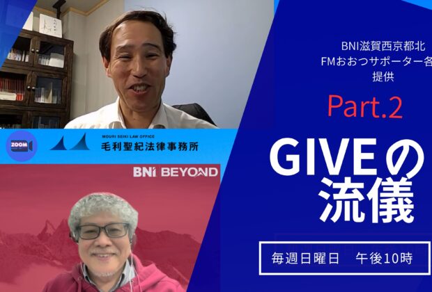 「GIVEの流儀 Part2」第16回 ゲストは「毛利聖紀法律事務所 毛利聖紀さん」です。BNI滋賀西京都北 提供