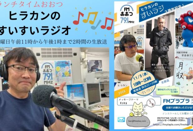 11月5日(水) #FMおおつ 79.1MHz 水曜日の18時〜20時は「こんばんは、おおつ」“ヒラカンのすいすいラジオ”でお楽しみください。 すいラジ3周年です! 今週の相棒は児童文学作家の「草香恭 […]