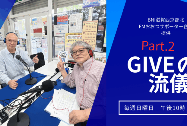 BNI滋賀西京都北 提供 パーソナリティは清久隆幸さん 第112回 6月15日(日) 午後10時〜10時30 「Giveの流儀」はBNIメンバーによるBNIメンバーや ビジネスマインドの高い方ための […] -